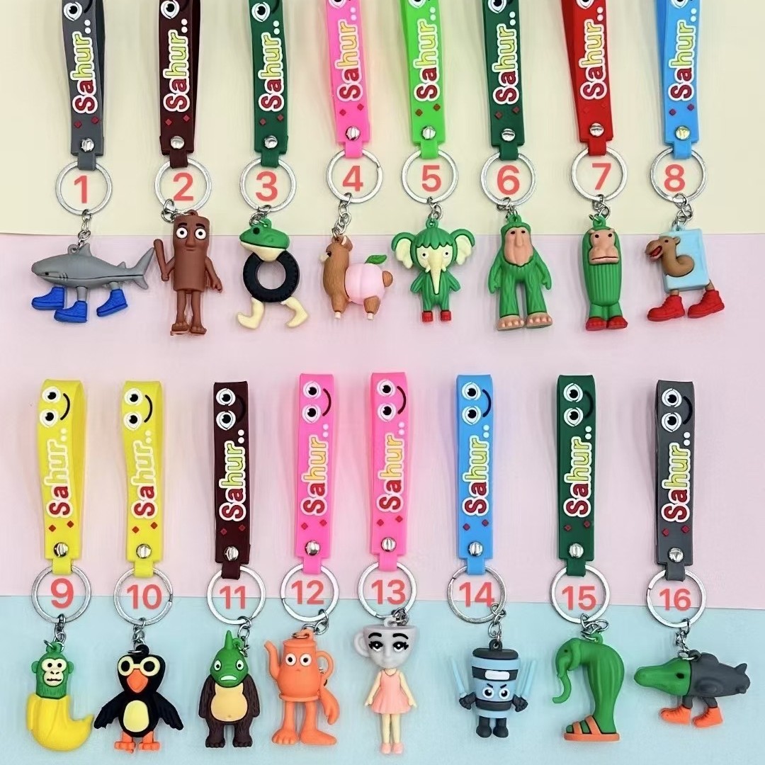 Gantungan Gantungan Kunci Kartun Hewan Klasik Gunung dan Laut Baru Diproduksi PVC Lem Lembut Tongkat Kayu Orang untuk Mengenakan Sepatu Hiu Tas Hiu