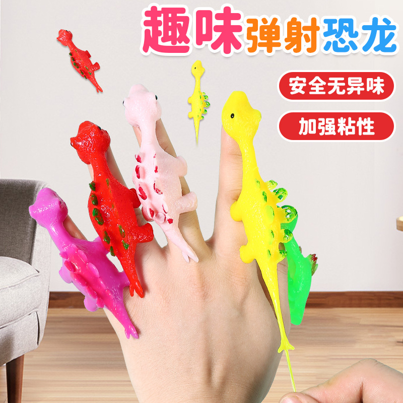 Katapel jari dinosaurus kecil anak ayam, mainan dinding lengket ventilasi dekompresi tinggi elastis musik cubit