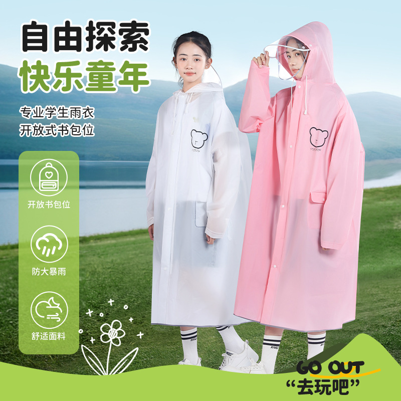 Jas hujan anak laki-laki perempuan anak laki-laki anak perempuan, tas sekolah dasar taman kanak-kanak dengan tas sekolah, ponco khusus tebal