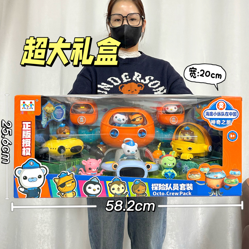Set mainan boneka kapal selam asli anak-anak, hadiah mainan boneka petualangan dokter Fort gurita asli untuk anak-anak