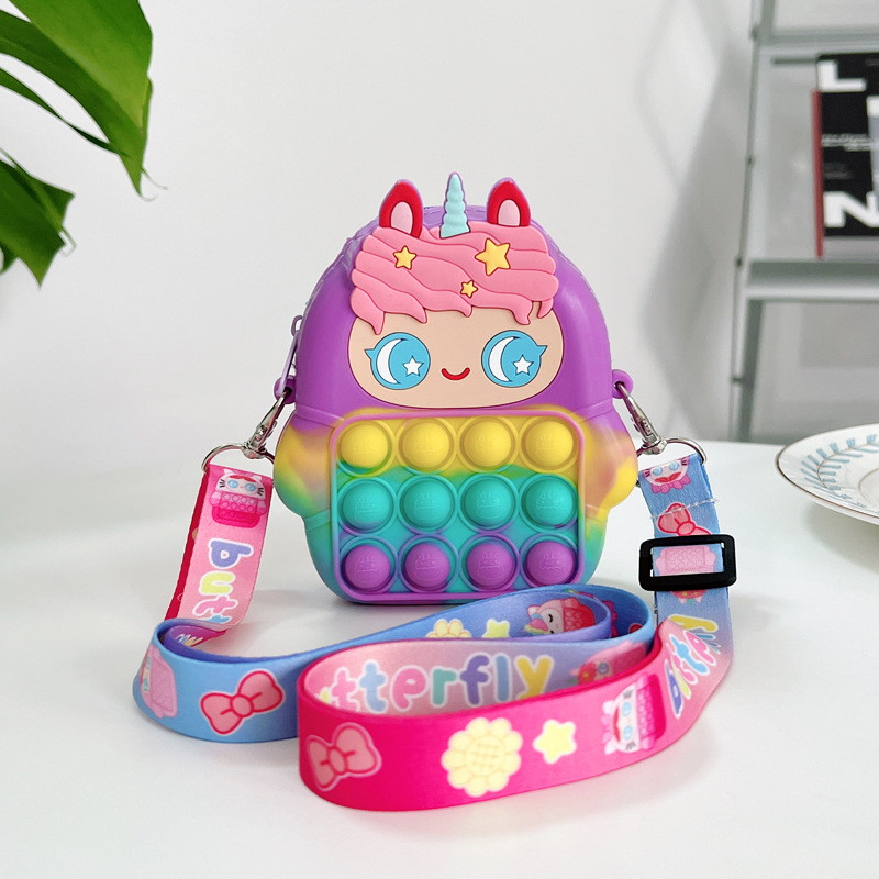 Tas pelopor pembunuh tikus boneka merah muda unicorn gelembung mainan dekompresi tekan ujung jari kepribadian modis cubit dua sisi