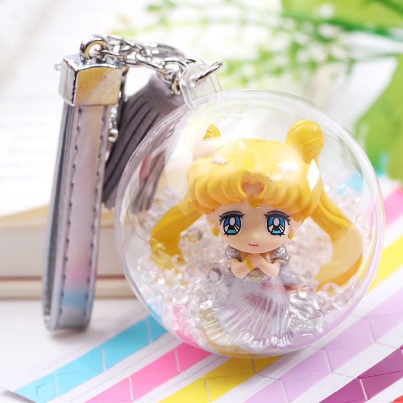 Fashion play pretty girl warrior boneka acak, gantungan kunci tas liontin bola kristal anak perempuan lucu tali kulit