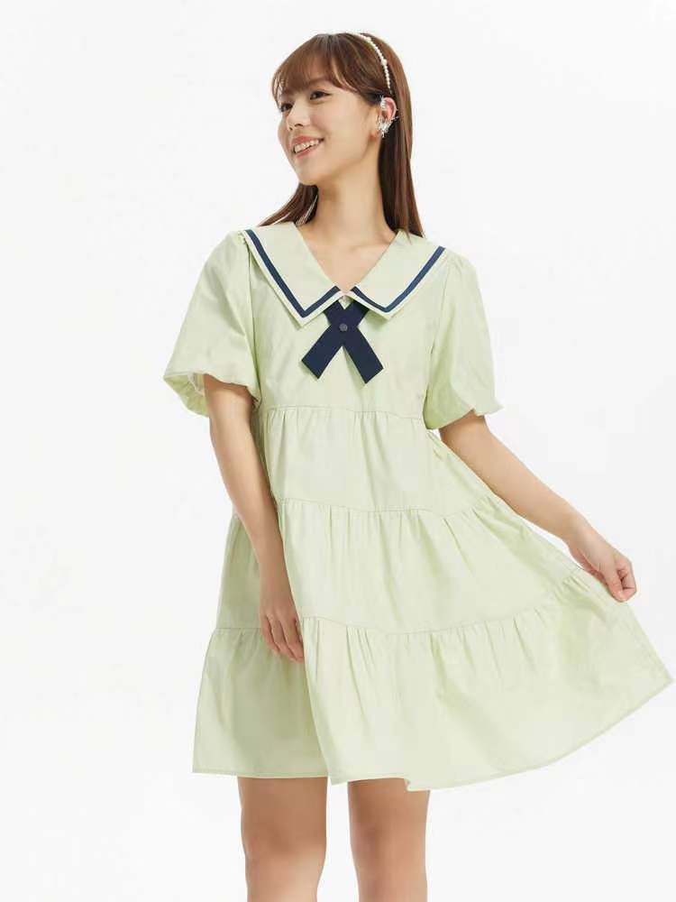 Rok Boneka Kerah Angkatan Laut Terlihat Langsing Longgar Modis Wanita Berukuran Besar Gaun Model Pendek Sederhana dan Elegan Gadis Pelajar Musim Panas