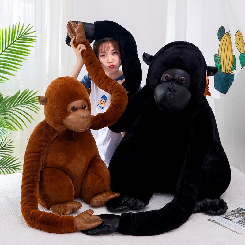 Mainan mewah gorila dua warna boneka anak perempuan nomor boneka monyet lengan panjang King Kong Hitam