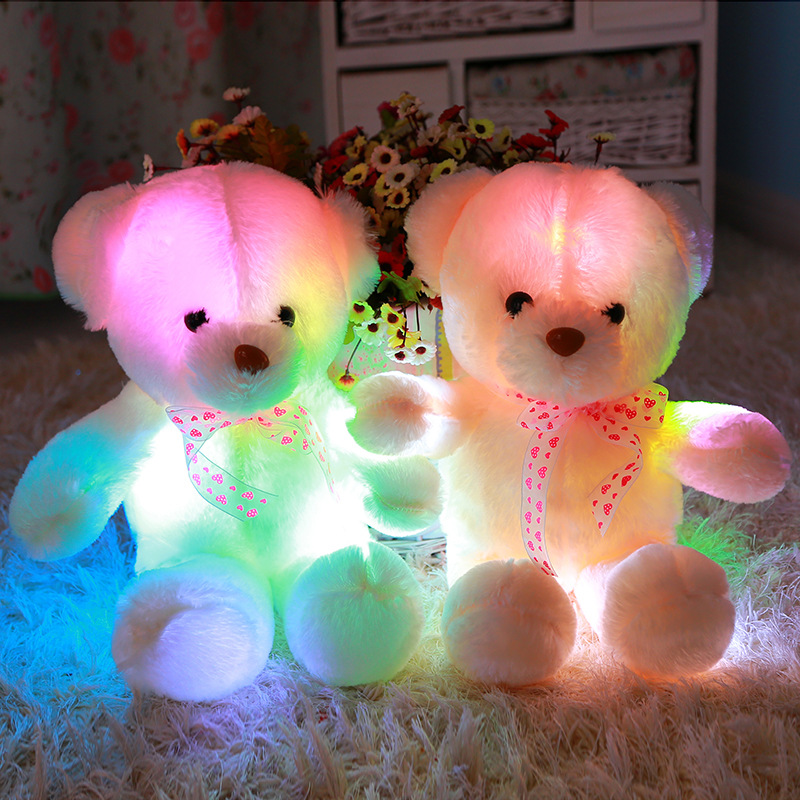 Warna-warni bercahaya boneka beruang teddy mainan mewah bantal bercahaya untuk anak perempuan hadiah ulang tahun pabrik grosir