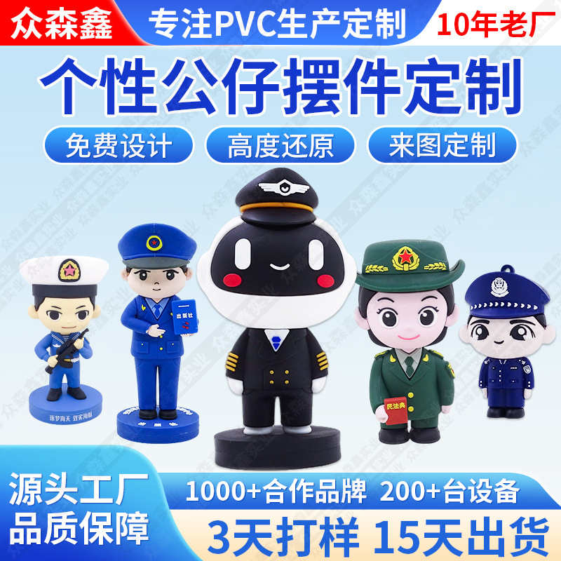 Boneka PVC Kustom Simulasi Model Dokter Perawat Polisi Dekorasi Ornamen Kartun Tangan Tangan Kartun Kotak Buta Lembut