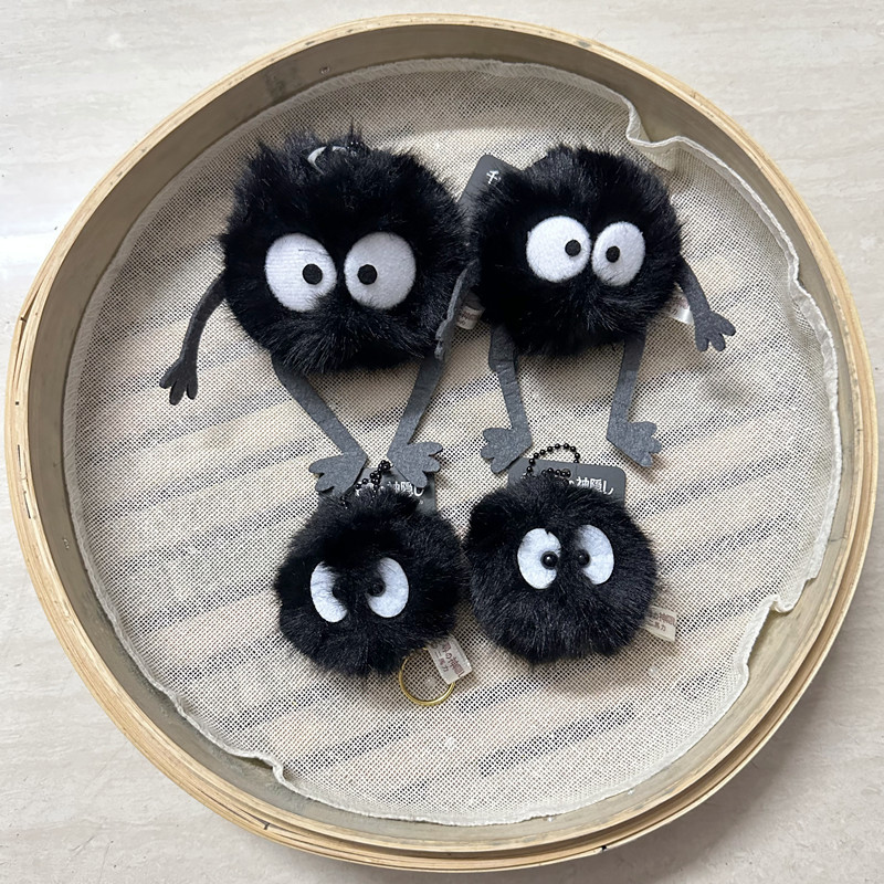 Miyazaki Totoro Qianhe Qianxun bola hitam karbon, bola bulu debu boneka elf tas lucu liontin kecil