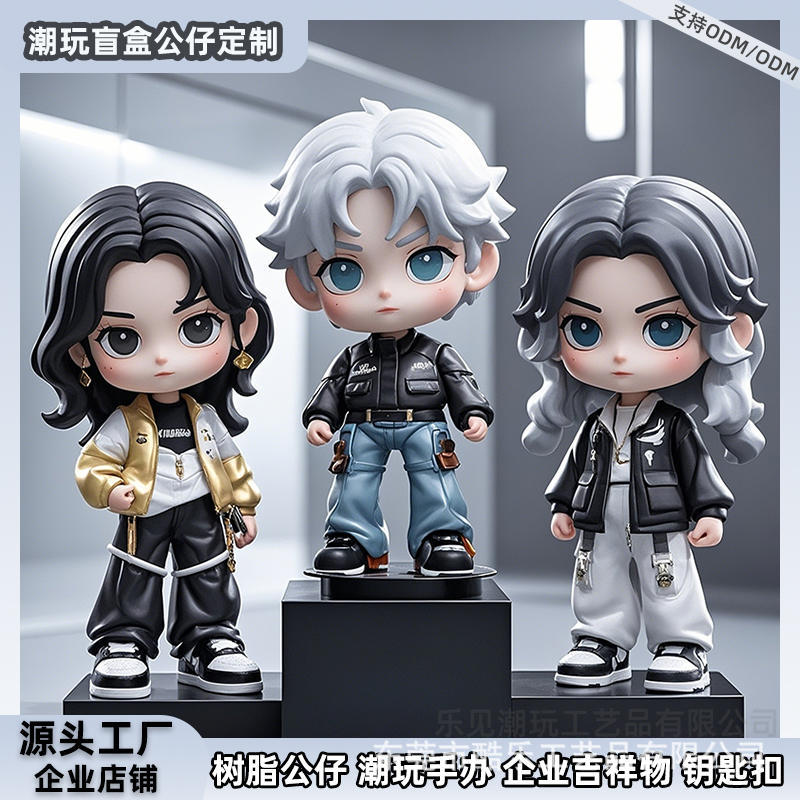 Kotak Buta Kustom Gantungan Kunci Ornamen Kartun PVC Boneka Resin Maskot Perusahaan Mainan Dibuat Khusus