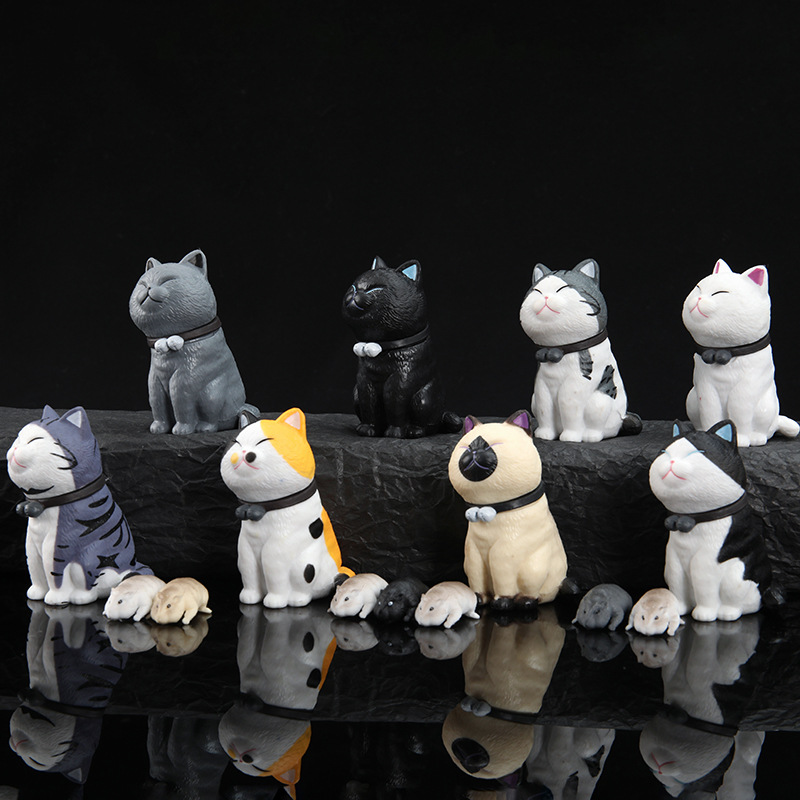 Boneka kucing duduk 8 tikus buatan tangan, mainan anak kucing kartun dekorasi lanskap mikro