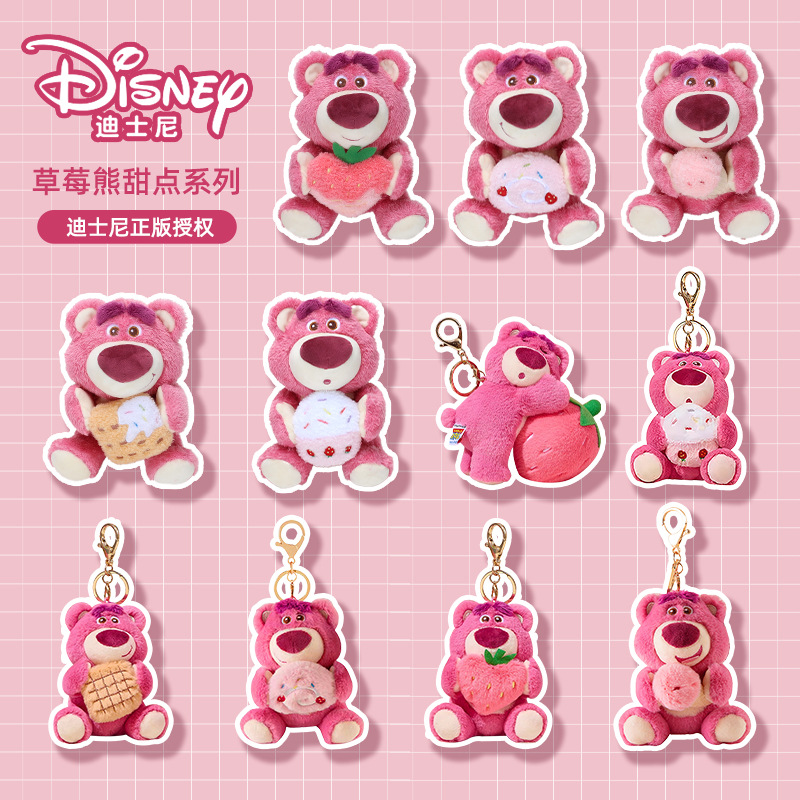 Asli Disney Liontin Kecil Seri Makanan Penutup Strawberry Beruang Mainan Mewah Boneka Lucu Tas Sekolah Gadis Aksesori Tas