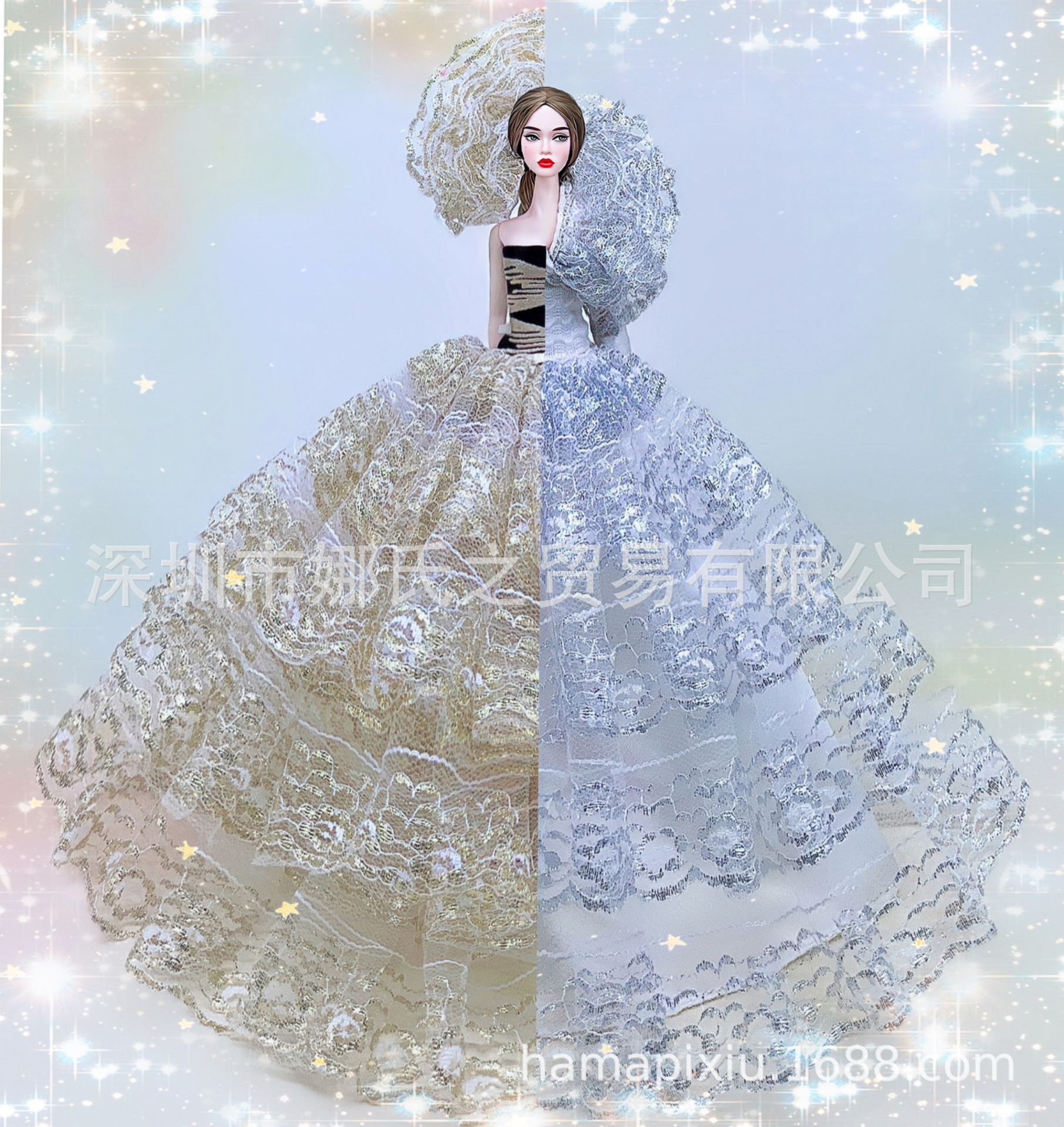 Gaun pengantin renda emas perak dengan jilbab kelopak gaun boneka 30cm 2023 Amazon e-commerce