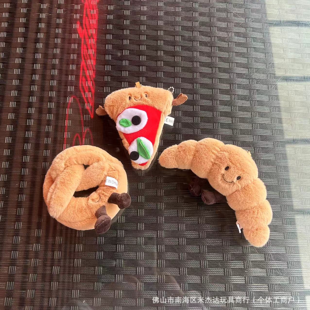 现货英国趣味可爱牛角包披萨卷饼面包毛绒公仔包挂件电玩城抓娃机