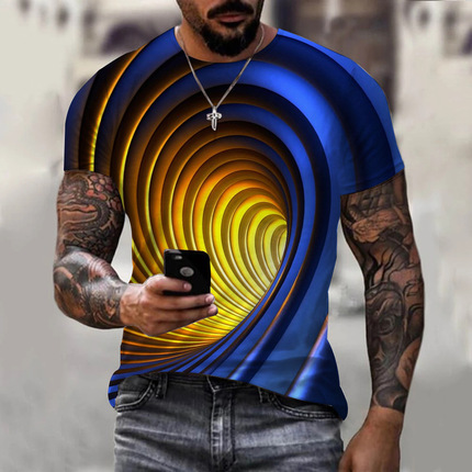 2024 Perdagangan Luar Negeri AliExpress Vortex Vertigo Kaos Pria Lengan Pendek Motif Cetak 3D Fiksi Ilmiah