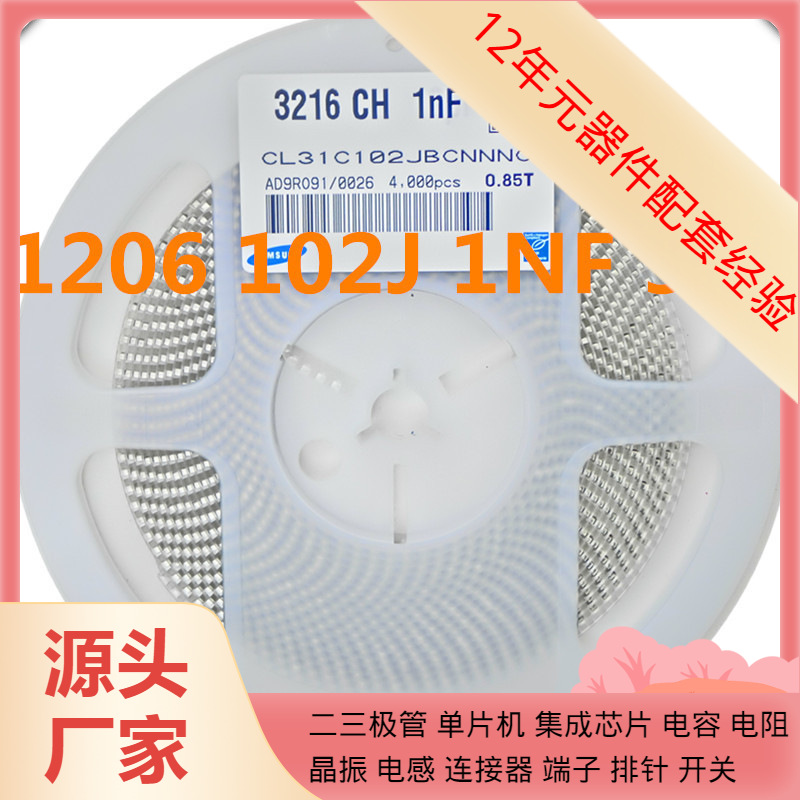 Kapasitor Chip capacitor 1206 1000PF 102J 50V C0G 5%