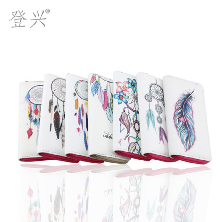 Dompet genggam PU panjang wanita lonceng angin bulu penangkap Mimpi gaya etnis baru untuk mencari tahu produsen sumber D