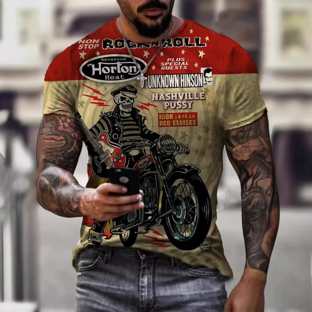 Pakaian Pria Perdagangan Luar Negeri Model Baru Musim Panas 2023 Kemeja Darah T Pria Populer Lengan Pendek Cetak Digital 3D Dapat Dicetak D