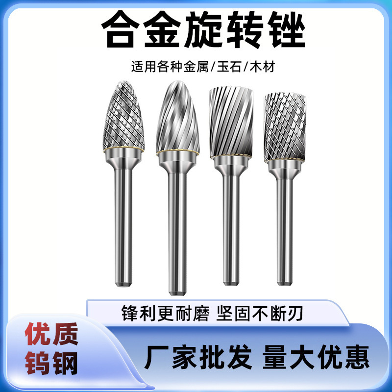 Kepala Gerinda elektrik, mata Gerinda baja tungsten logam, mata Gerinda elektrik, mata Gerinda ukiran kayu, tunggal dan ganda, kikir putar bahan Aloi keras