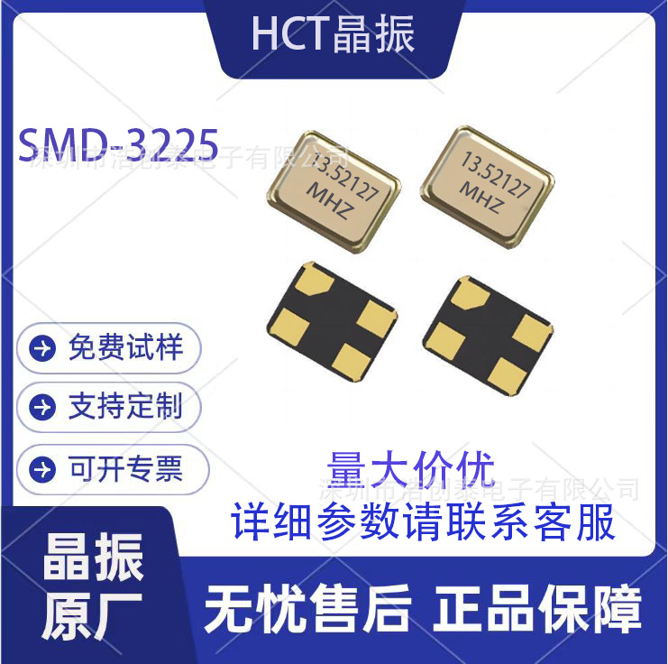 Presisi tinggi, tahan guncangan 3225 tempelan kristal getaran 13.52127MHZ20PF10PPM, Resonator pasif