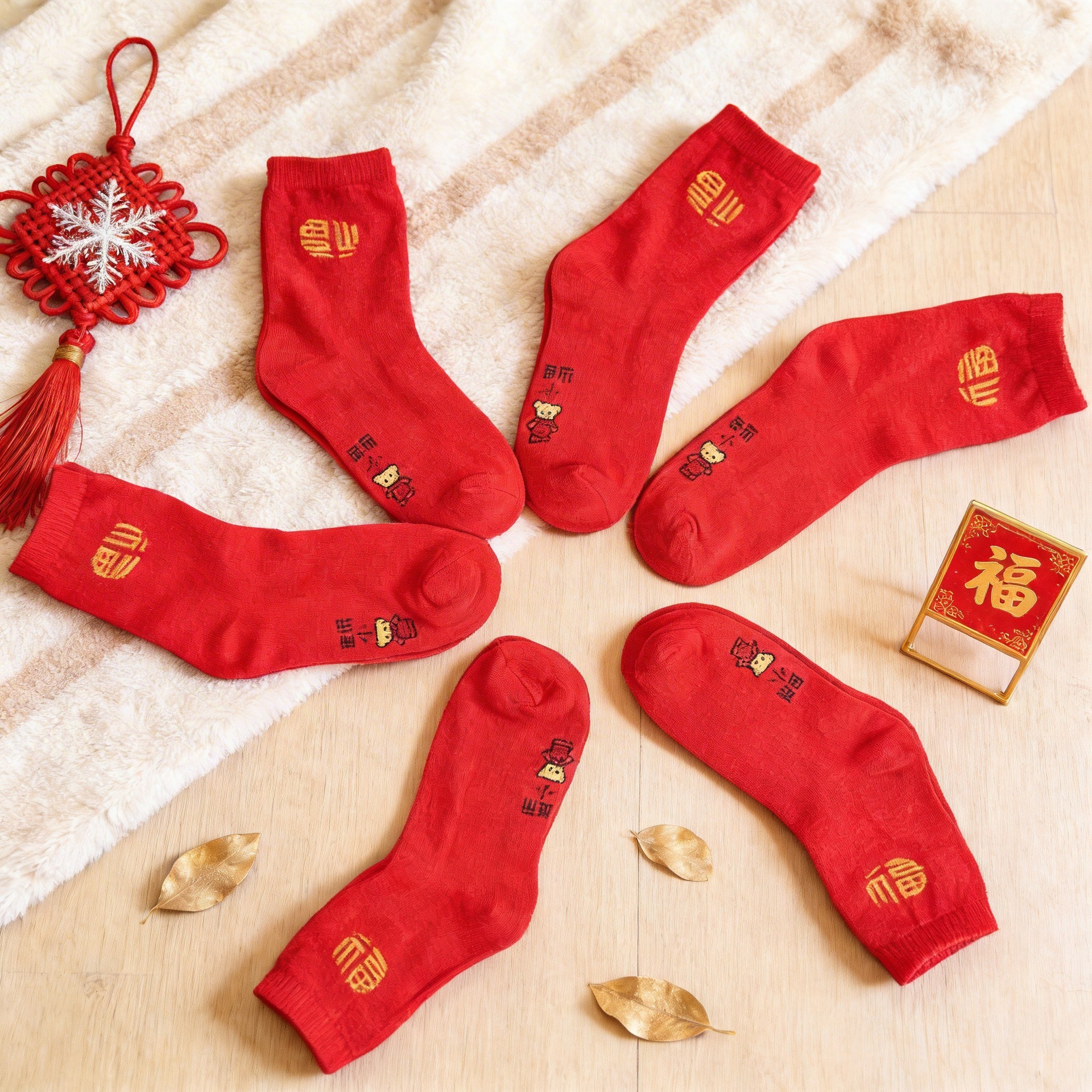 Kaus Kaki Merah Tahun Baru Imlek Kaus Kaki Katun Sedang Huruf Fu untuk Pria dan Wanita