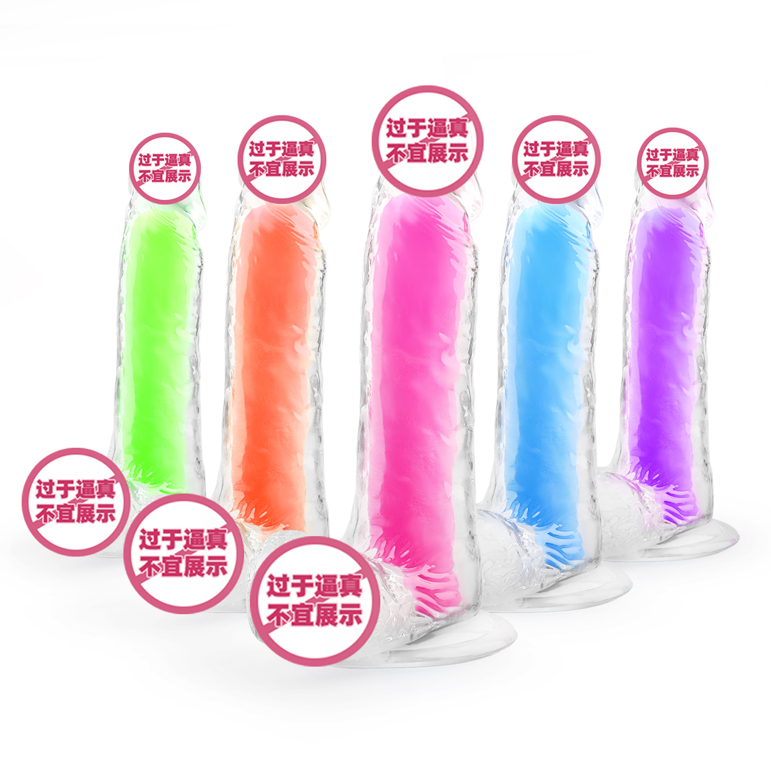 Dildo buatan transparan dua warna berwarna-warni, lembut seperti kulit, realistis, alat bantu masturbasi seksual wanita, produk dewasa