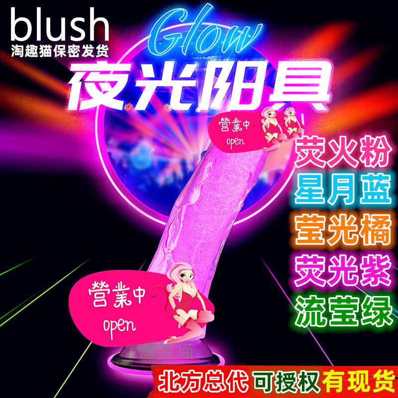 Blush Dildo Wanita Imitasi Penis Transparan Rambut Transparan Malam Pengisap Fluorescent Peralatan Masturbasi Mainan Seks Dewasa