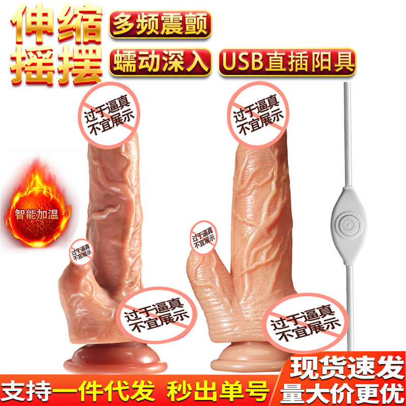 Silikon Dildo Imitasi Lembut Daging Realistis Teleskopik Listrik Menghangat Alat Self-Masturbasi Wanita Penis Palsu AV Guncangan