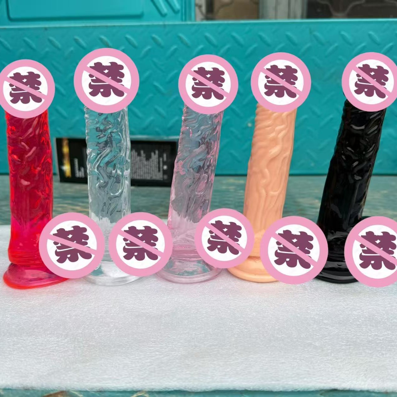 Jiuai mainan seks dewasa, dildo penis kristal simulasi seksi perlengkapan meriam warna transparan