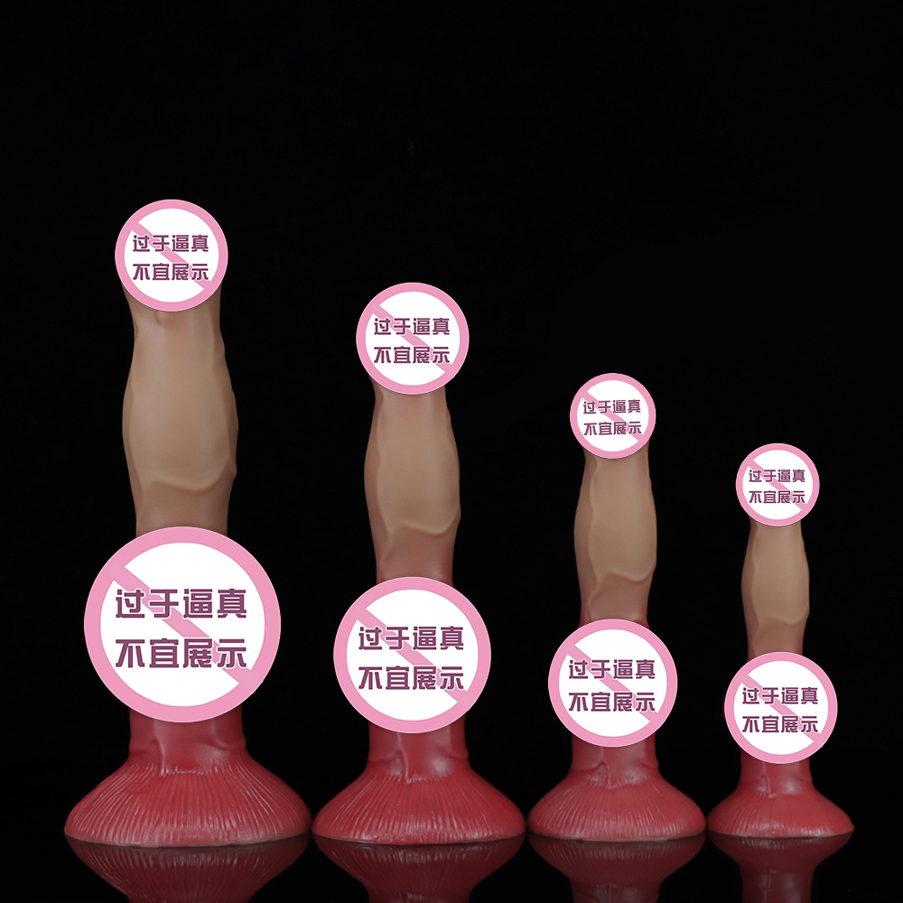 Perlengkapan dewasa dildo silikon cair penis tebal besar simulasi rias wajah hewan penis anjing empat ukuran