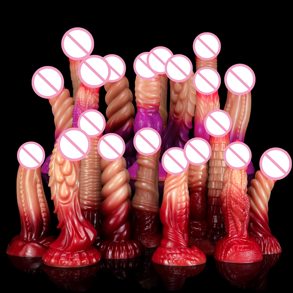 Akar Ajaib Silikon Cair Warna Warna-warni Imitasi Dildo Besar Penis Kuda Produk Seks Dewasa Lintas Batas Wanita
