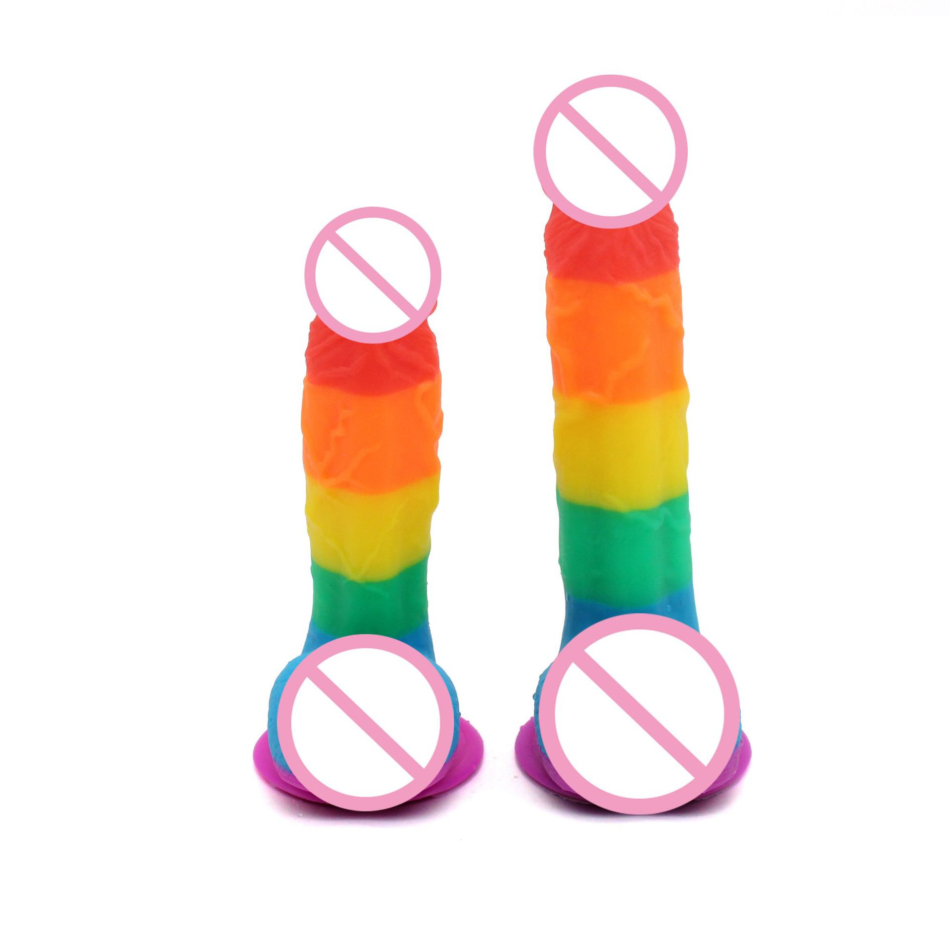 Pelangi Dildo Super Tebal Penis Pria dan Wanita Permainan Seks Dewasa Keempat Mainan Tingkat Lanjut Cinta