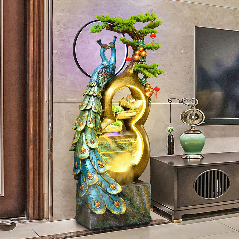 Air mancur labu keberuntungan baru dekorasi air mengalir merak ruang tamu kantor sirkulasi air feng shui roda hadiah pindah rumah
