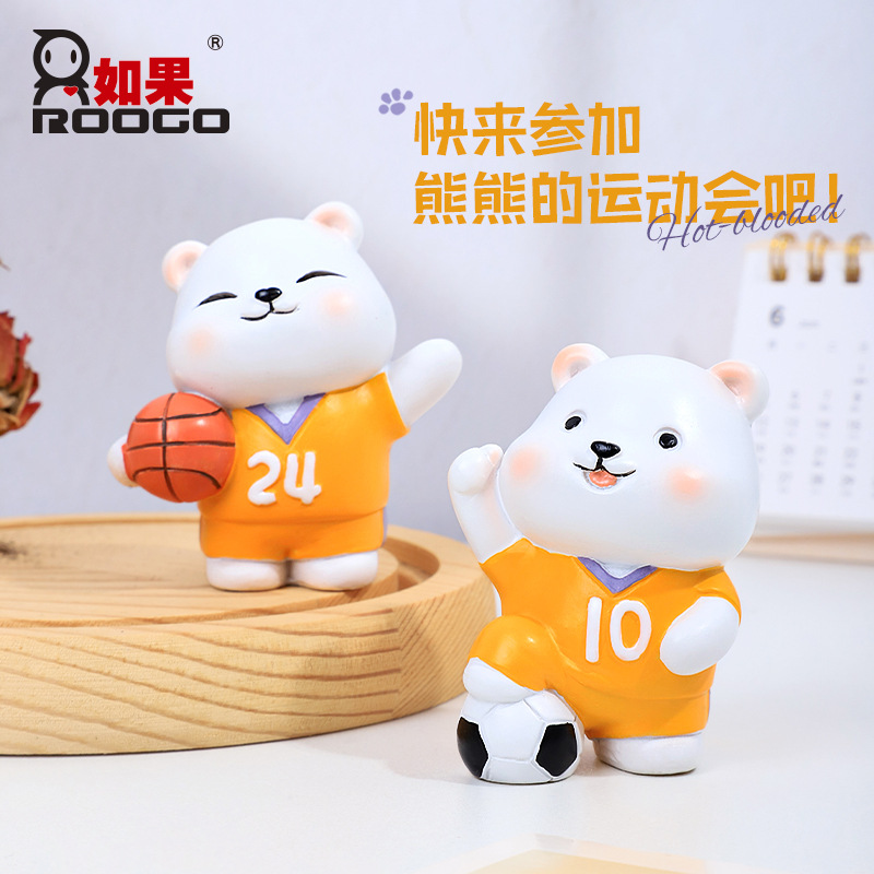 ROOGO boneka olahraga beruang kuat, dekorasi resin kantor rumah desktop Kreatif