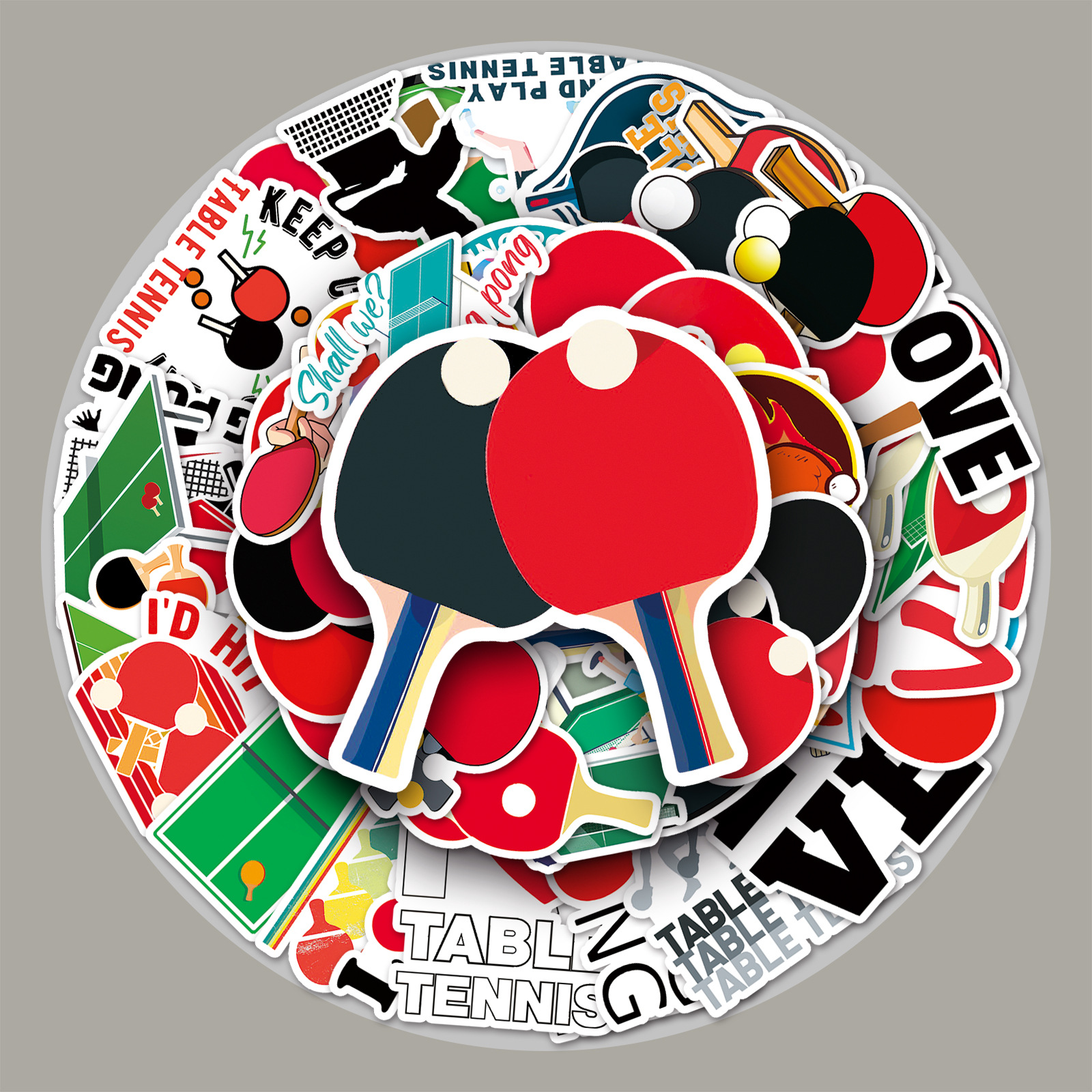 50 buah stiker grafiti tenis meja, stiker grafiti pribadi lintas batas olahraga DIY ponsel cangkir air koper tahan air