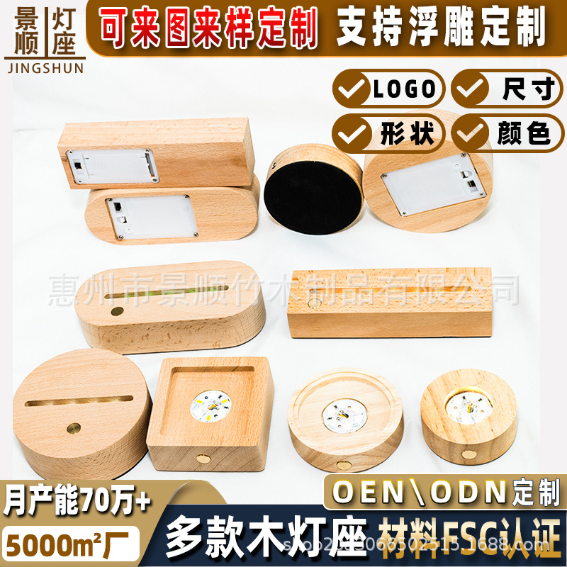 Alas lampu malam akrilik kayu beech pengisi daya USB bola kristal lampu dasar dasar lampu kayu grosir dapat disesuaikan lintas batas