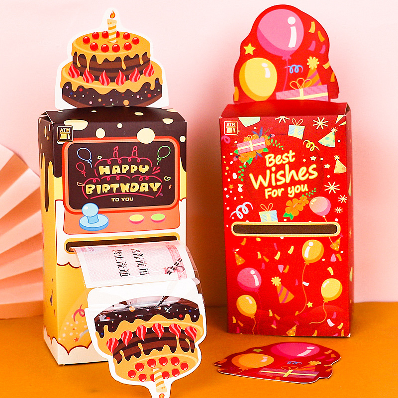 Mesin uang ATM amplop merah kepribadian kreatif, kotak uang ulang tahun tarik kartun 520 pengakuan hadiah