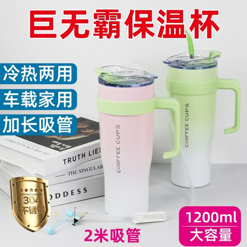 Big Mac Gelas Tahan Panas 304 Gelas Air Stainless Steel Kapasitas Besar Sedotan Panjang Gelas Mobil Tahan Dingin Mobil Gelas Es