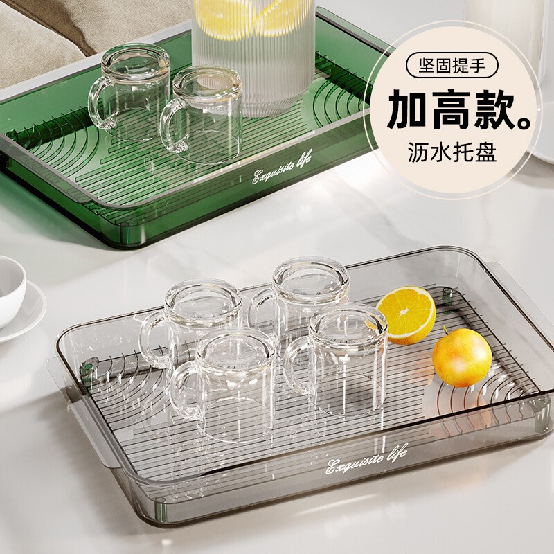 Nampan Plastik Tiriskan Transparan Gaya Jepang Cangkir Rumah Tangga Persegi Panjang Kreatif Cangkir Teh Rak Tempat Rak Teh Meja Teh