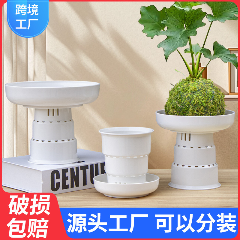 Pot Pot Bola Lumut Pabrik Pasokan Lintas Batas Pot Bunga Kreatif Kayu Brasil Model Baru Pot Bunga Plastik Ekstra Tebal Bernapas Grosir