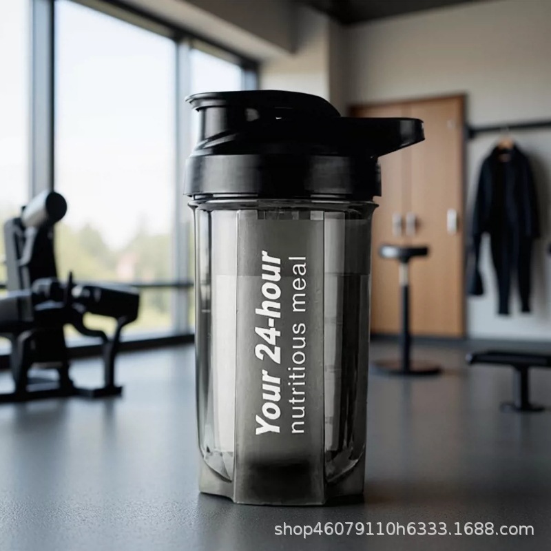 Cangkir goyang portabel 24 jam dengan skala, cangkir air protein bubuk pengaduk milkshake LOGO cangkir