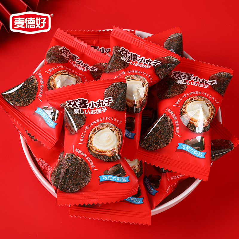Maidhao bola kecil bahagia bola coklat kue kantor makanan ringan kemasan kecil independen massal