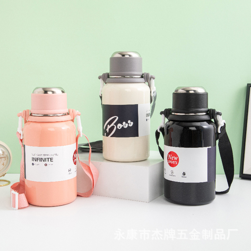 Cangkir vakum baja tahan karat, cangkir air kapasitas besar 900ml, tali cangkir sedotan siswa dengan pegangan