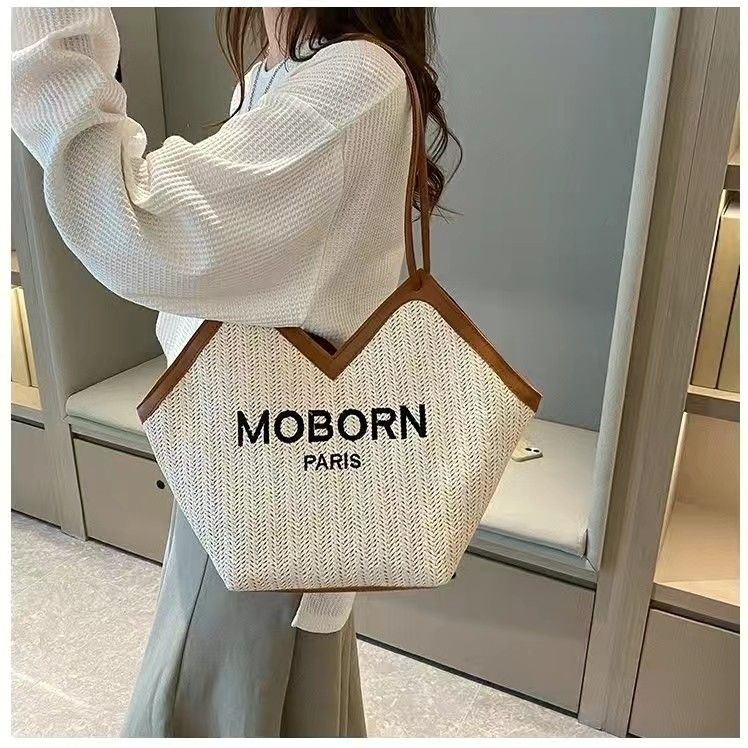 Tas Jerami Kasual Sederhana Tas Bahu Tunggal Kasual Model Baru Musim Panas 2024 Wanita Tas Tenun Pinggir Pantai Tas Tote