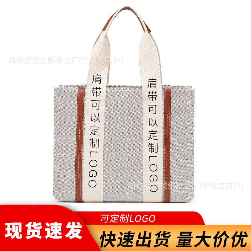 Tas Tote Modis Sederhana Model Baru 2025 Tas Wanita Kanvas Jinjing Retro Tas Selempang Bahu Tunggal Huruf Garis Wanita