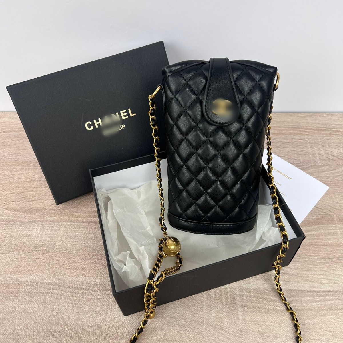 2024 baru lucu mini tas bundar kecil gaya channel rhombic tas rantai sederhana all-match bahu tas messenger wanita