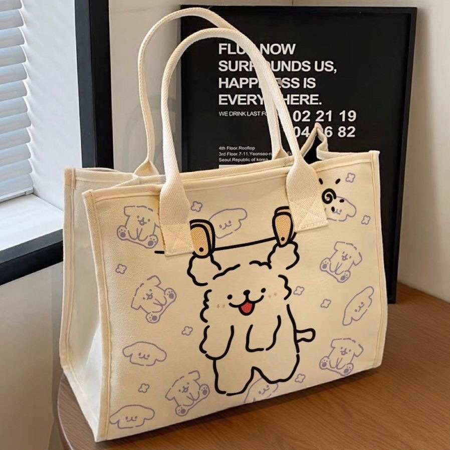 Tas Bahu Tunggal Anak Anjing Kartun Nilai Tinggi Tas Kanvas Pelajar Tas Sekolah Wanita Luar Kapasitas Besar Tas Tote Kapasitas Besar