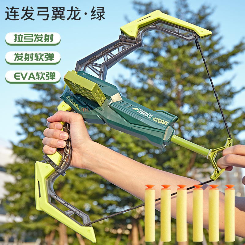 Mainan anak-anak dalam dan luar ruangan, setelan dinosaurus lipat multifungsi, busur dan panah, dapat meluncurkan bom lembut, menembak besar, mainan dalam dan luar ruangan