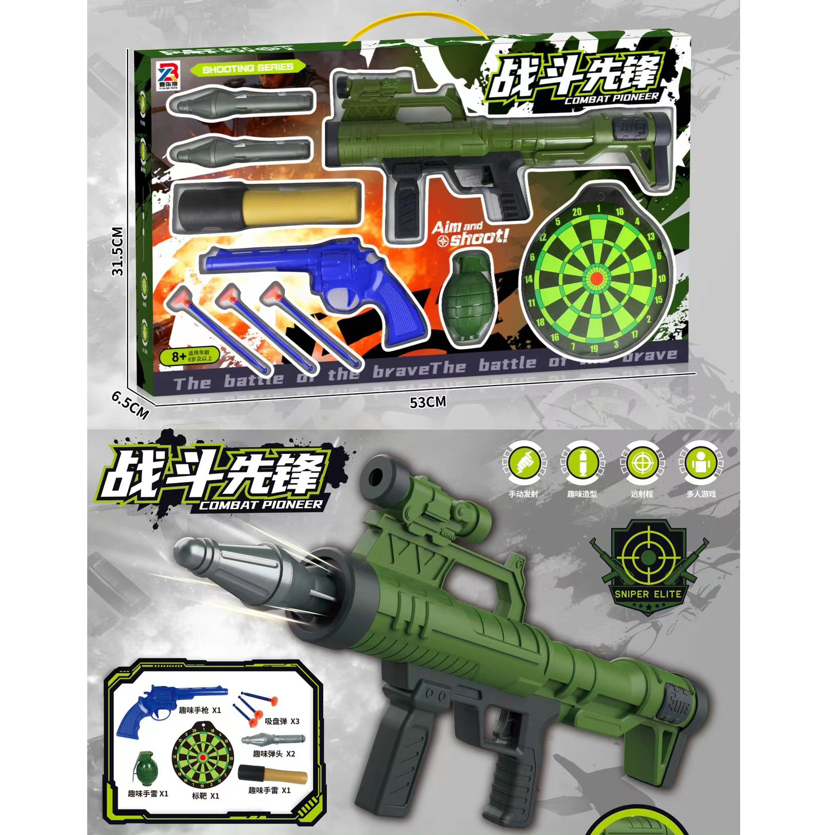Simulasi Anak Lembut Pistol Peluru Roket Peluru Teleskop Militer Walkie-talkie Granat Kompas Menembak Mainan