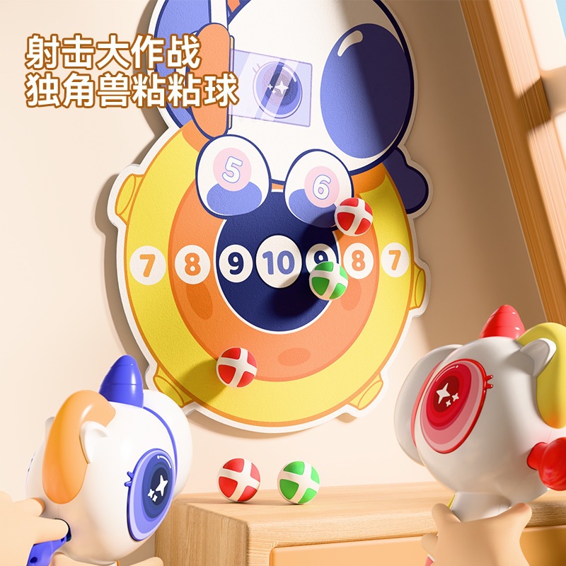 Lintas Batas Unicorn Lengket Bola Lengket Pistol Target Lemparan Bola Lengket Mainan Anak Laki-laki Menembak Interaksi Orangtua-Anak Grosir