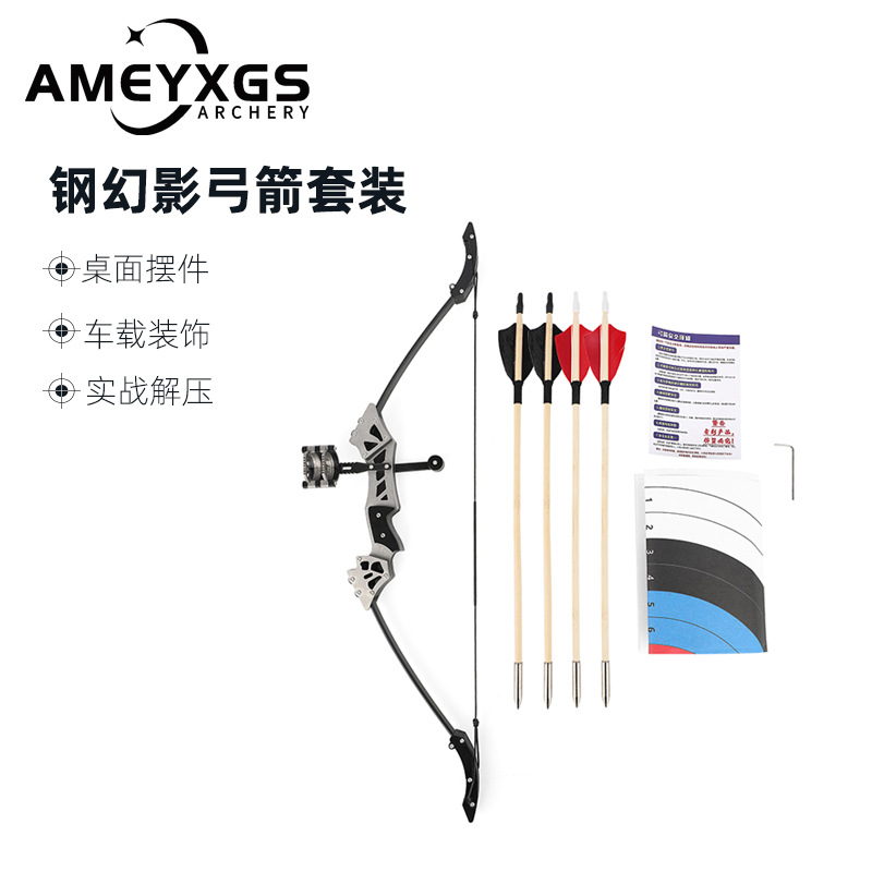 Setelan busur dan anak panah mini portabel, mainan dekompresi kantor busur dan panah mini Phantom baja portabel
