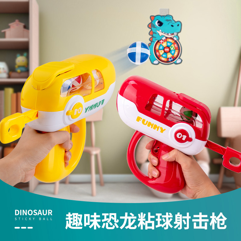 Bola dinosaurus pistol bola lengket target menembak orang tua-anak interaktif dalam ruangan luar ruangan olahraga mainan anak-anak kios grosir